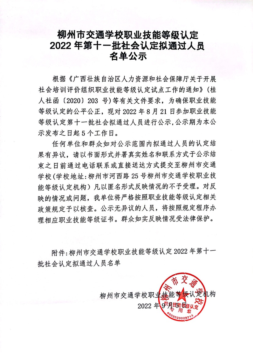 菠菜信誉平台集合网职业技能等级认定2022年十一批社会认定拟通过人员名单公示
