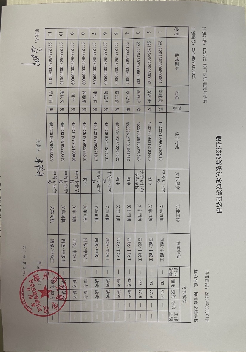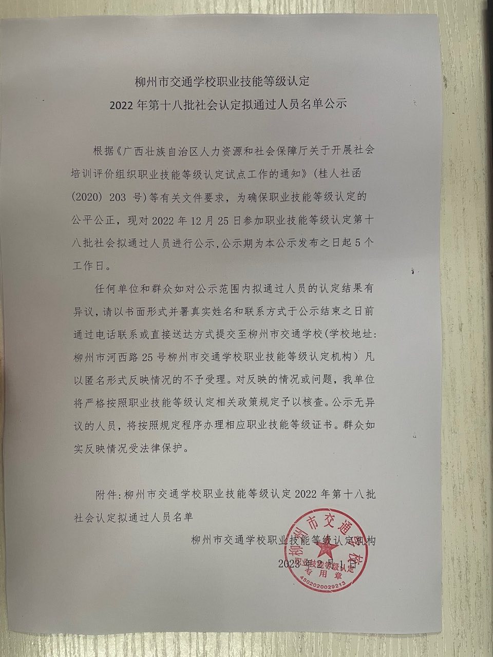 菠菜信誉平台集合网职业技能等级认定2022年第十八批叉车初级认定拟通过人员名单公示