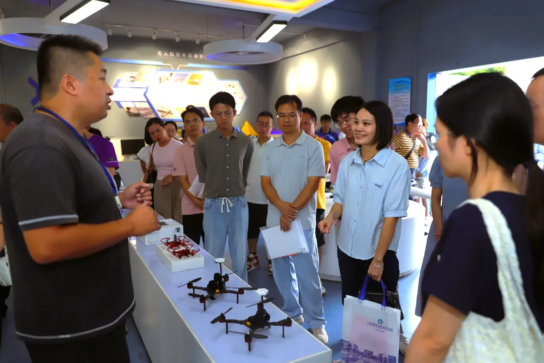 上午9时许,交流活动正式拉开帷幕。在学校工作人员的引导下,灵山县职校一行首先前往二号实训综合楼前合影留念,定格两校交流的重要瞬间。随后,嘉宾们先后参观了志善班主任工作室、无人机陈列厅(校企合作实训基地)、心理咨询室及船舶驾驶实训中心。每到一处,学校相关负责人均详细介绍场地建设理念、功能布局、日常运营及育人成效,展示了学校在班主任队伍建设、产教融合、心理健康教育及特色专业实训教学等方面的扎实成果,赢得来访嘉宾的高度认可。