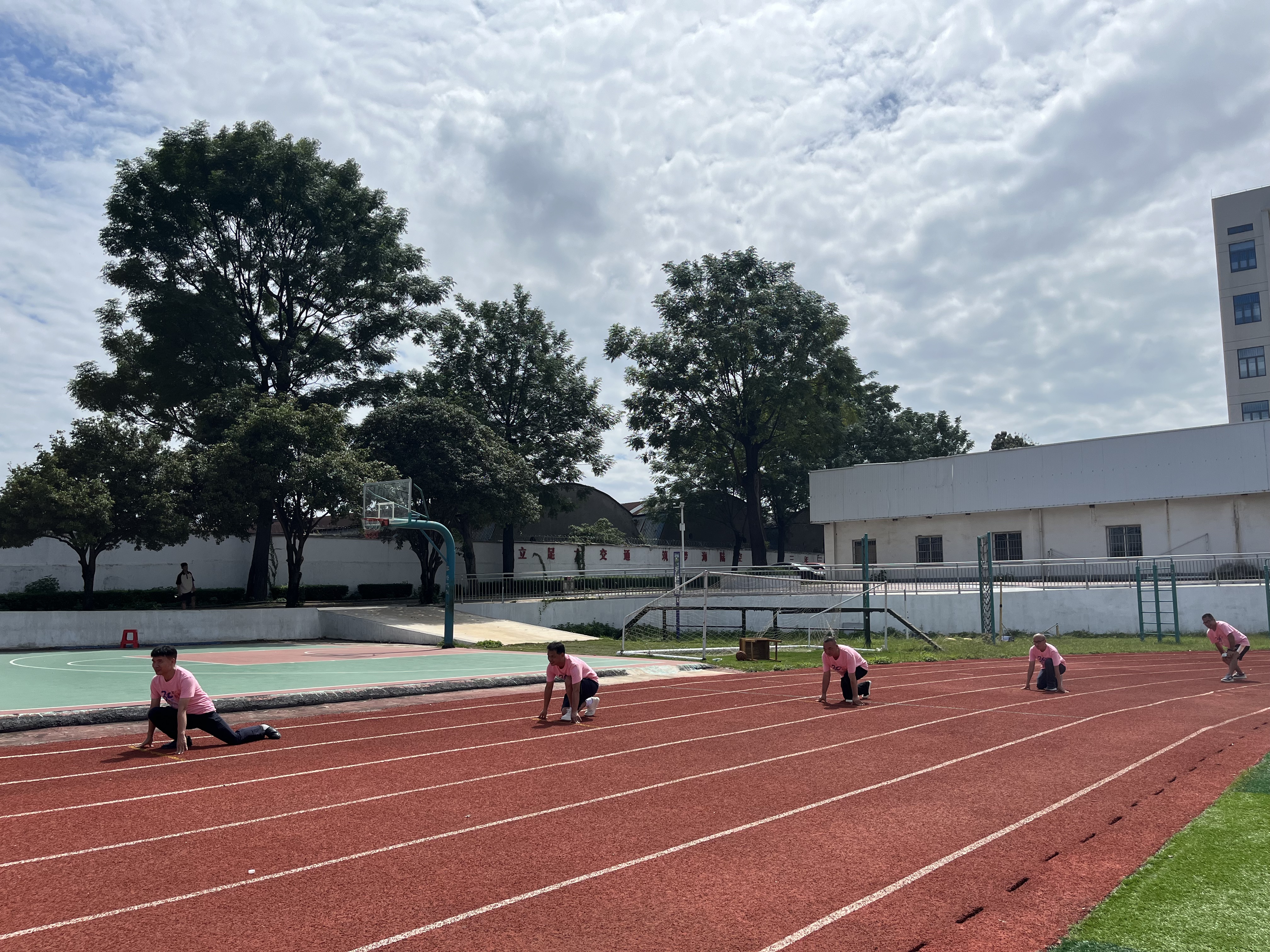 校友们漫步在熟悉的校园里,每一步都踏着回忆的节拍。教学楼前、跑道上、足球框旁,他们纷纷驻足合影,用镜头定格下这份跨越时空的温情。在跑道上,校友们摆出预备起跑的姿势,仿佛瞬间回到了那个朝气蓬勃、意气风发的年代;站在足球框前,他们相视而笑,耳边似乎又响起了当年“球传给我”的激昂呐喊。