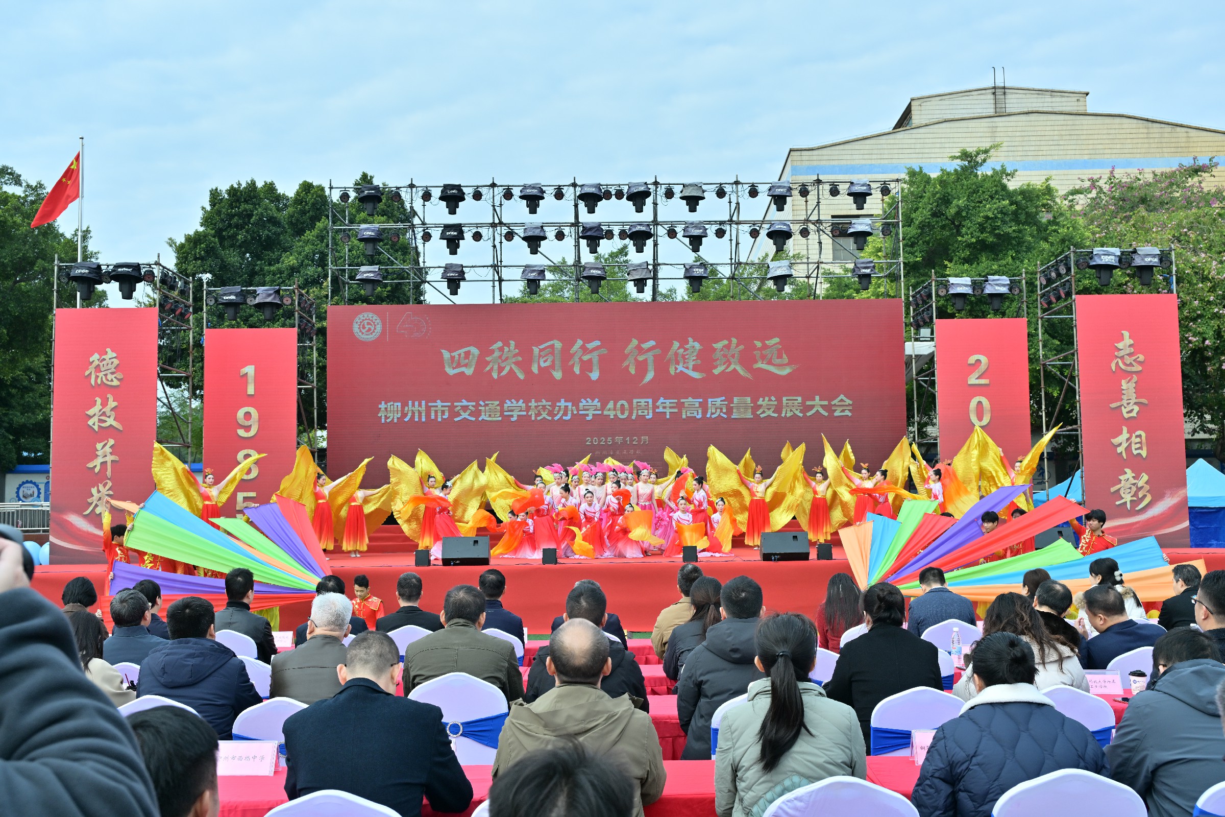 四十载栉风沐雨,四十载薪火相传。12月26日,学校以“四秩同行,行健致远”为主题,精心策划并举办了一系列丰富多彩、意义深远的教育教学高质量发展活动。本次活动全面回顾了学校的发展历程,多维度展示了办学成就,有力凝聚起推动学校发展的磅礴力量。众多领导、嘉宾、校友代表、退休教职工代表与在校师生欢聚一堂,共同见证这一承载历史与未来的重要时刻。