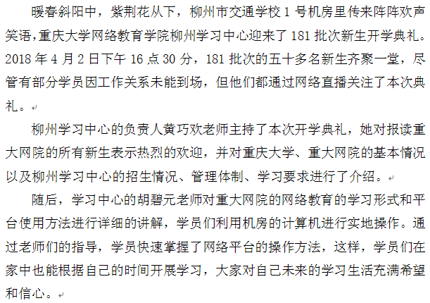 重庆大学网络教育学院柳州学习中心举行181批次新生开学典礼