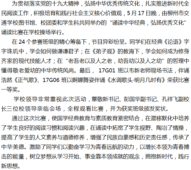 菠菜信誉平台集合网举行中华经典诵读比赛