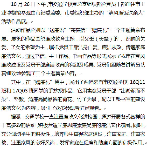 市交通学校组织党员教师参观“清风廉语送亲人”活动作品展