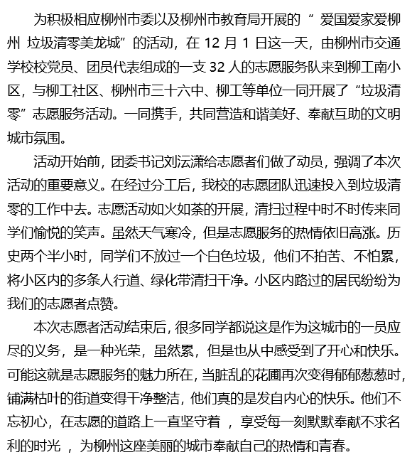 “爱国爱家爱柳州 垃圾清零美龙城“菠菜信誉平台集合网开展志愿服务活动