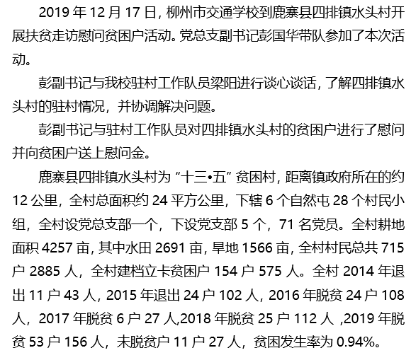 菠菜信誉平台集合网到鹿寨县四排镇水头村开展扶贫慰问活动