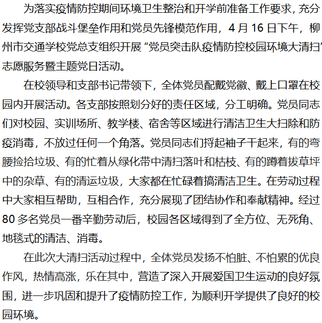 抗疫情迎开学 党员突击队在行动 ——菠菜信誉平台集合网开展“校园环境大清扫”主题党日活动