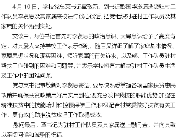 党总支覃敬新书记对脱贫攻坚(乡村振兴)工作队员 关怀慰问