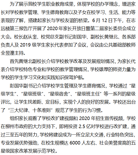 菠菜信誉平台集合网举办2020年家长开放日暨第二届家长委员会成立大会