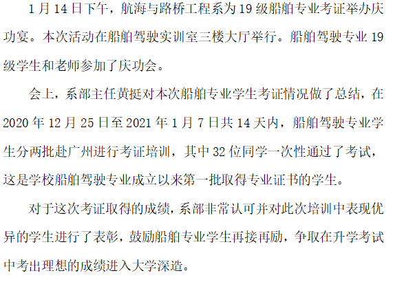 船舶驾驶专业举行考证总结会