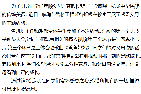 拥抱亲情,感恩父母 航海与路桥工程系感恩父母主题活动