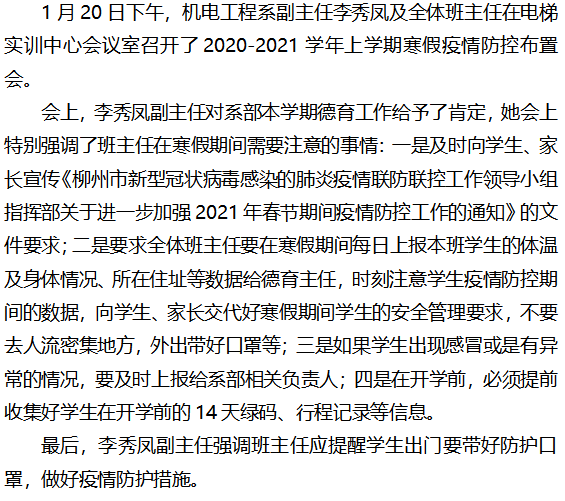 机电工程系召开2020-2021学年上学期寒假 疫情防控布置会