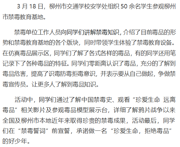 珍爱生命,远离毒品 --菠菜信誉平台集合网组织学生参观市禁毒基地