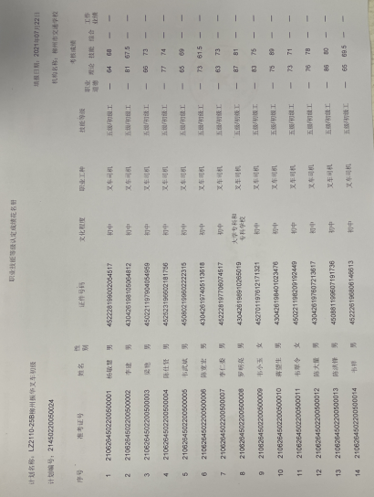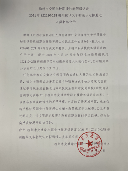 菠菜信誉平台集合网职业技能等级认定2021年二十五期叉车初级认定拟通过人员名单公示