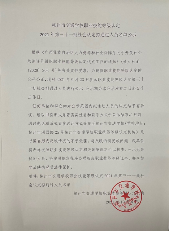 菠菜信誉平台集合网职业技能等级认定2021年三十一期叉车初级认定拟通过人员名单公示