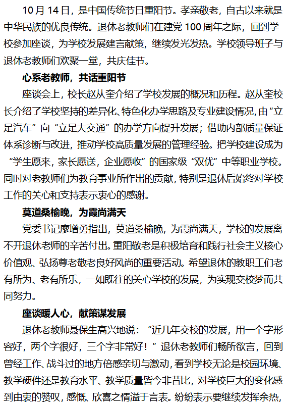 建党百年话重阳,建言献策谋发展 --菠菜信誉平台集合网举行退休教职工座谈会