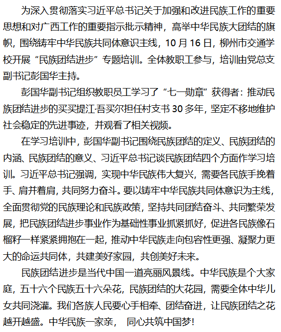 各民族像石榴籽一样紧紧拥抱在一起 --菠菜信誉平台集合网开展民族团结进步培训