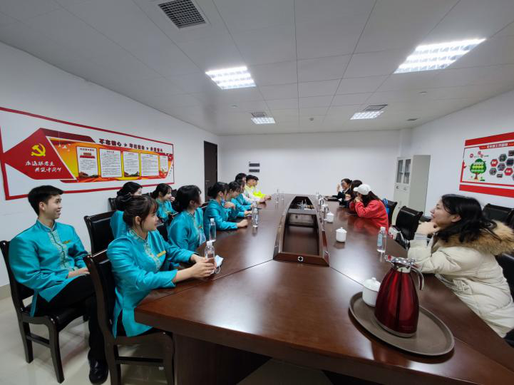 企业负责人韦秀红经理组织实习学生进行座谈交流,回访教师通过交流了解实习生在企业实习情况,从交流中得知,每位学生在柳州莲花山庄酒店的改变都非常大,不但养成了良好的行为习惯,待人处事能力、沟通能力、工作能力等各方面都得到了很大提升。