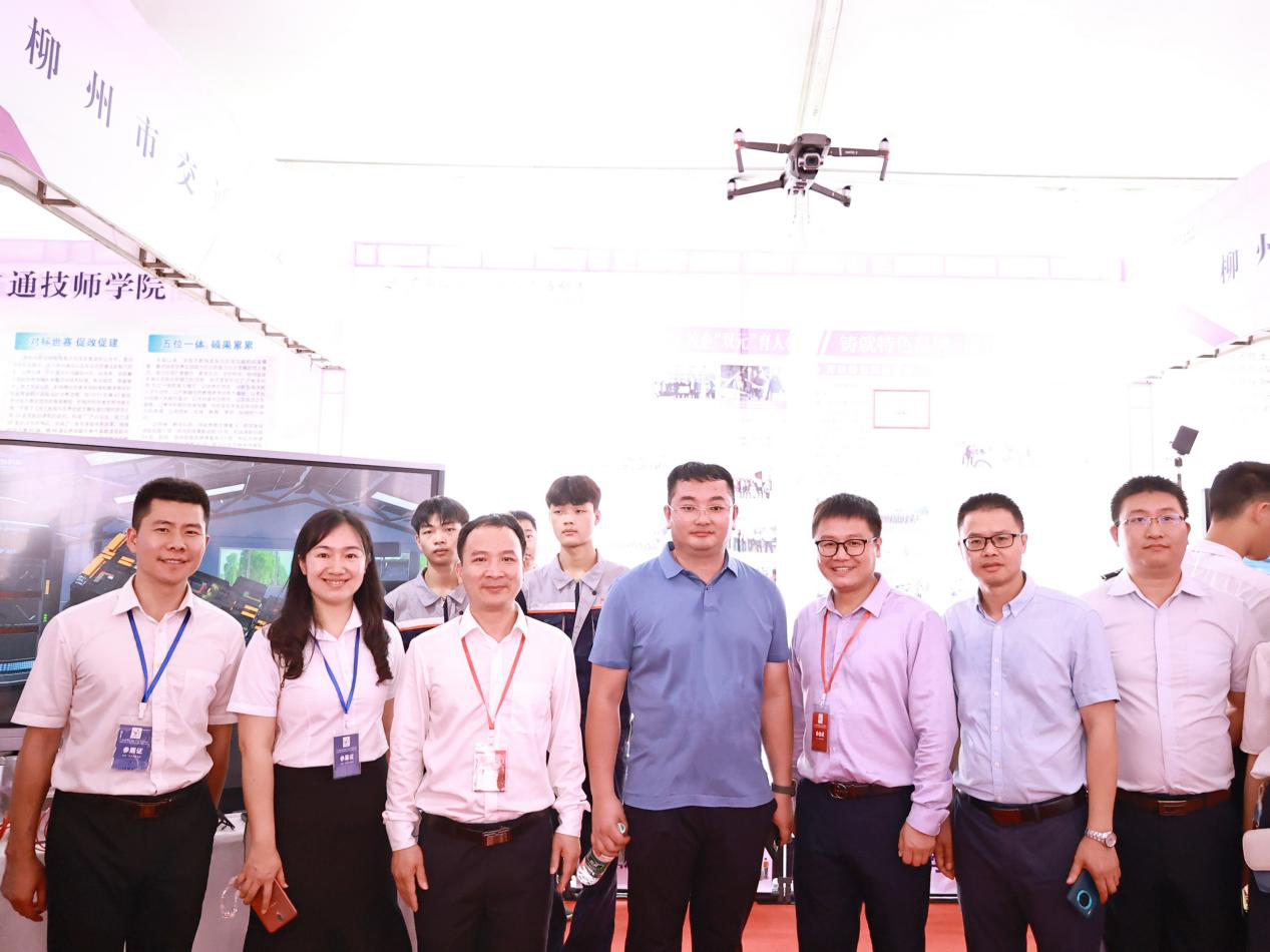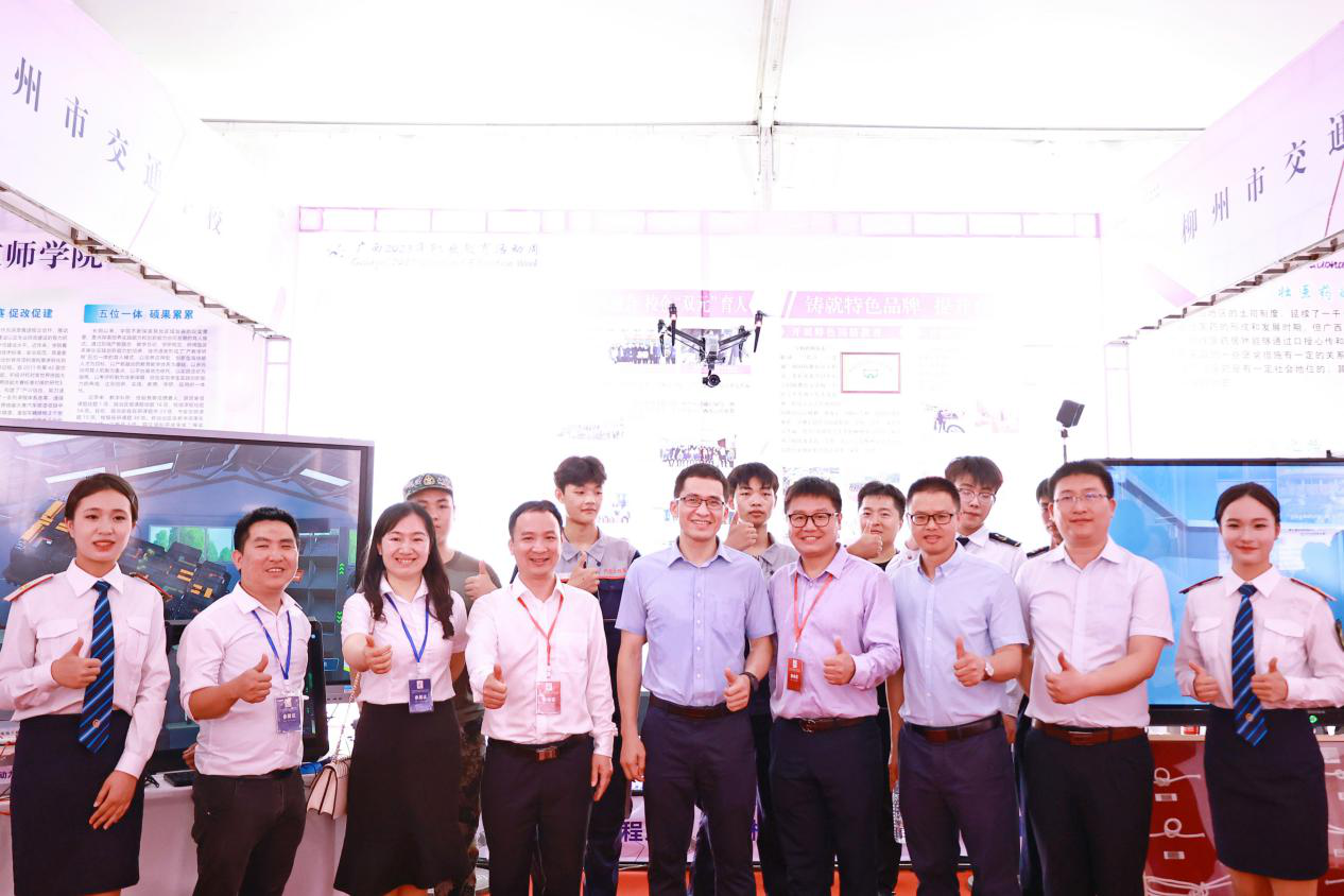 自治区党委教育工委书记、教育厅党组书记、厅长刘友谊莅临我校展区参观指导时,现场观看了展品演示,我校校长黄䶮介绍了学校的专业特色、发展前景、教育教学成果和专业水平。教育厅职成处副处长廖造壮 、教育厅职成处主任郭进磊、柳州市教育局调研员曾建胜、兄弟院校领导等众多参观人员对我校展示“机甲大师对抗赛”、“无人机飞行展示”、“VR体验”、“电池医院电芯原理”等项目都产生了浓厚的兴趣,我校展区成为打卡热点,门庭若市。