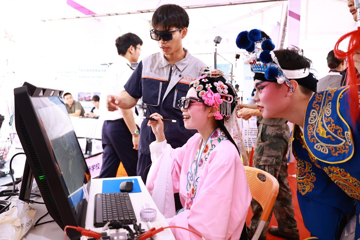 在我校展位上,“机甲大师”项目的学生们能够灵活地控制自己面前的机甲车,通过组队的方式,完成3V3的占地对决,勇攀高峰。在“航海VR体验”项目处,参加体验的学生正佩戴着特定的VR眼镜,置身遨游在旷阔无垠的大海之上,双手操控着感应摇杆,仿佛正在驾驶着庞大船舶,乘风破浪。在“电池医院电芯原理”项目处,体验学生通过模拟把电池拆解开来,看看到底是哪个零件出了问题,从而进行针对性的修复。避免电池问题影响到汽车的动力和安全性。