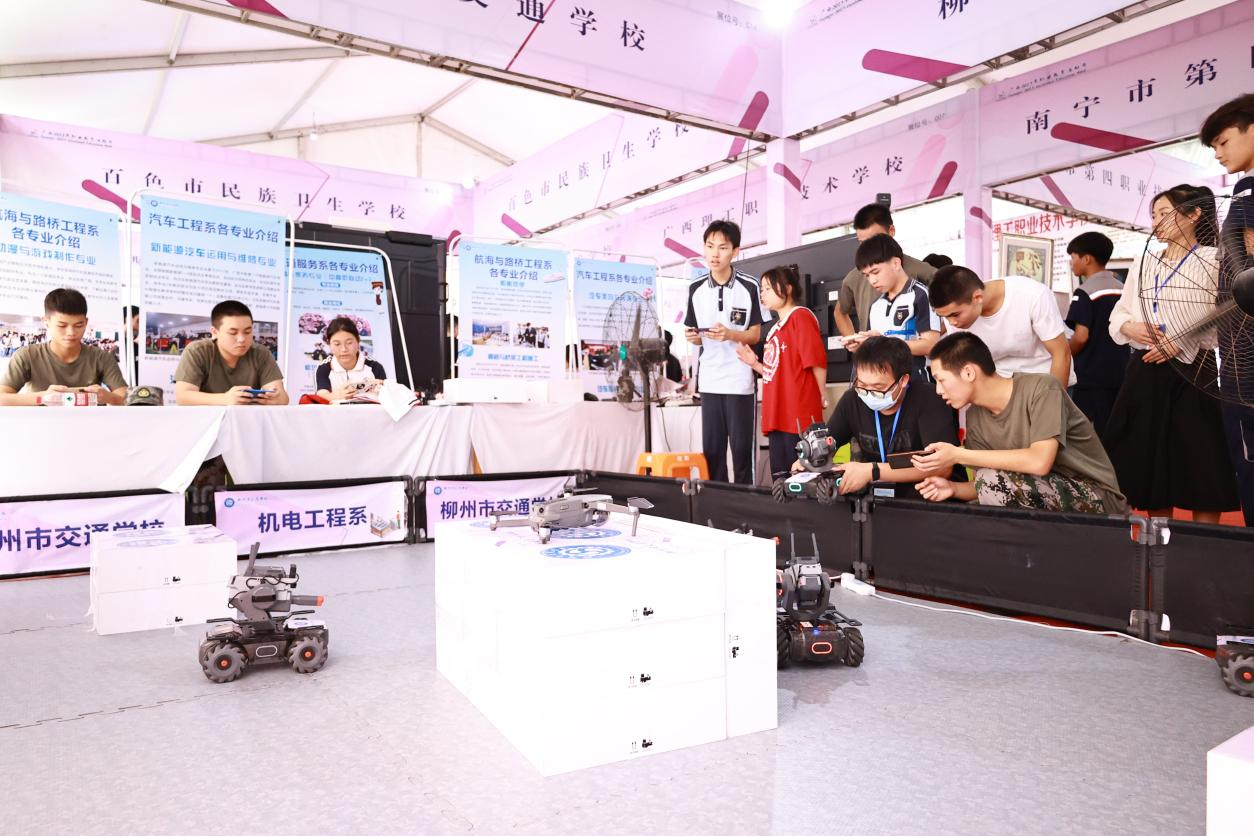近日,广西2023年职业教育活动周在梧州职业学院顺利落下帷幕。今年职教周活动主题是“技能:让生活更美好”,我校校长黄䶮、副校长罗柳健、副校长周轶群带领我校师生代表积极参与职教周活动,我校通过展板、专业技能展示、云展厅等形式进一步普及职业教育,提高人们对职业教育的认识和支持度。我校展位不仅得到自治区教育厅、柳州市教育局领导等领导的高度关注,还受到了学生的争相打卡体验。