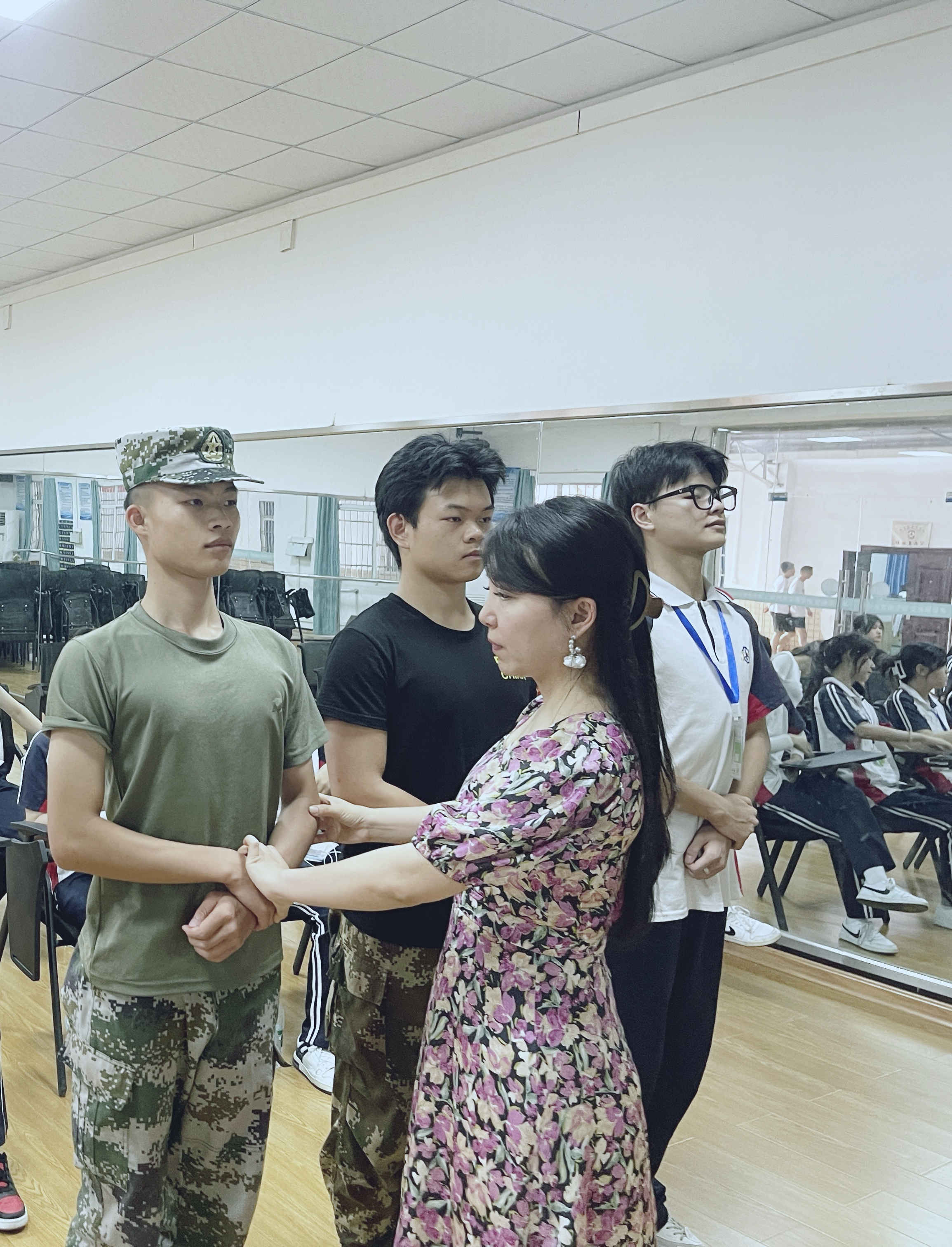 易敏婷老师对学生进行礼仪规范动作赛前指导