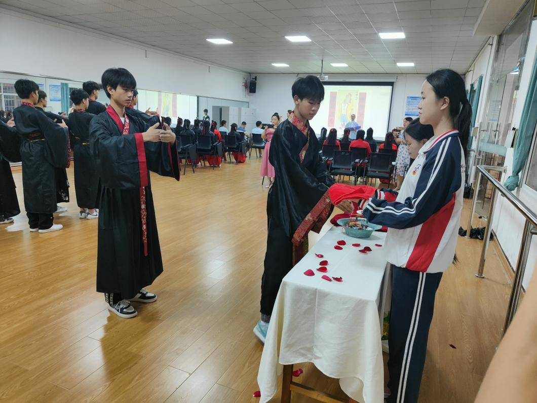 2023年6月20日,21高铁1班在黄芸老师的组织下,身着传统汉服,举办了一场具有传统文化的成人礼。本次“成人礼”冠笄礼)活动分为正衣冠、礼拜先师、顶上添彩、聆听师训、诵读经典等内容。