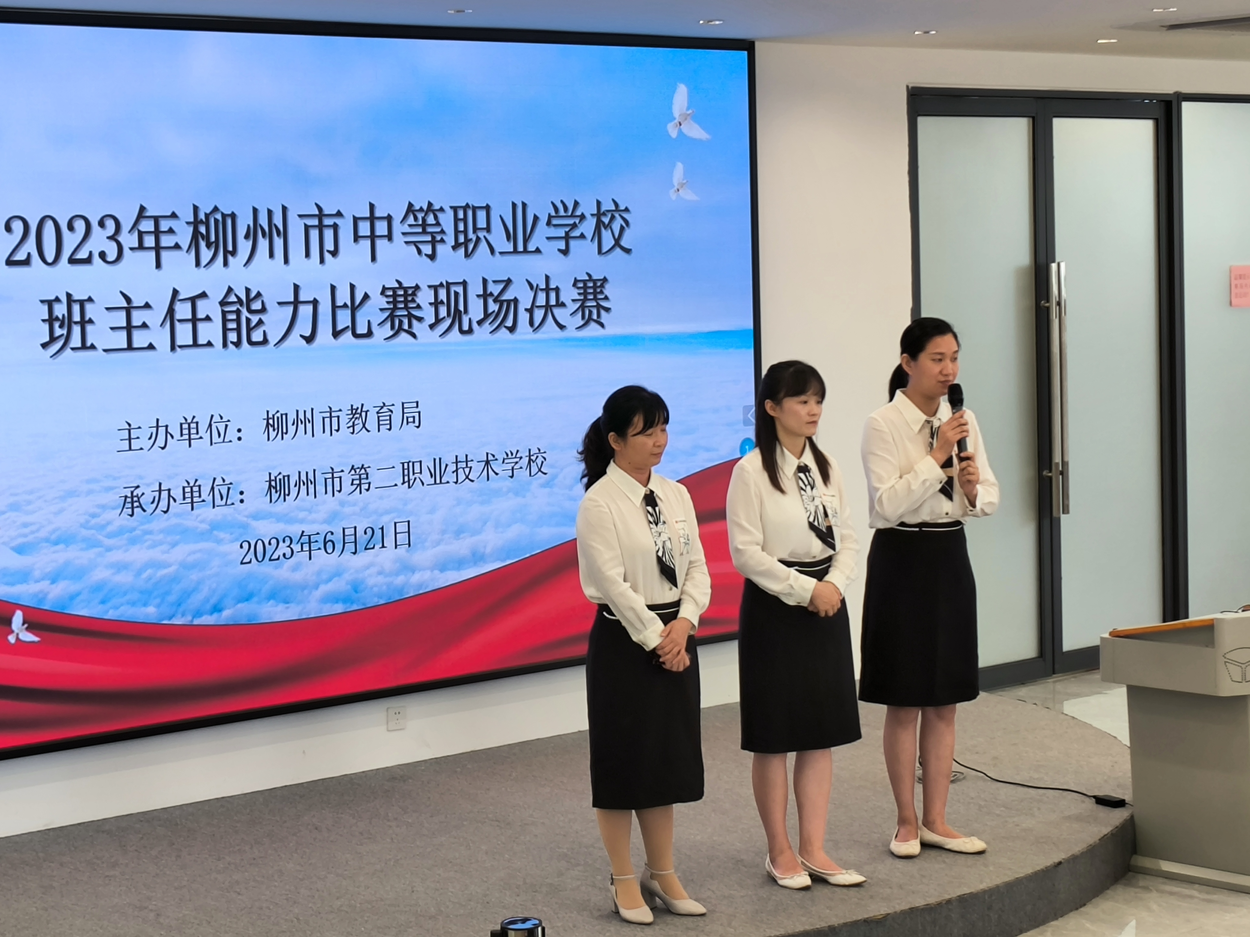为深入贯彻习近平新时代中国特色社会主义思想,落实立德树人根本任务,以赛促建,柳州市开展了“2023 年柳州市中等职业学校班主任能力比赛,以班级建设方案、管理育人案例、班级活动方案等内容全面考核了班主任的专业技能。我校共有两组参赛队伍参赛,并获得好成绩。