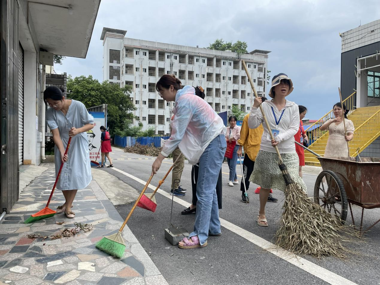 支部全体党员、入党积极分子、系部非党中层干部准时集中图书馆,对图书馆、食堂周边、交通服务系实训场所、志向楼、至善书屋进行深度清洁大清扫。教师们迅速投入到清扫活动中,大家拿着扫把、铲子、扒子等劳动工具,分区清扫,通过近2个小时的不懈努力,道路干净整洁,卫生死角处垃圾被彻底清除干净。
