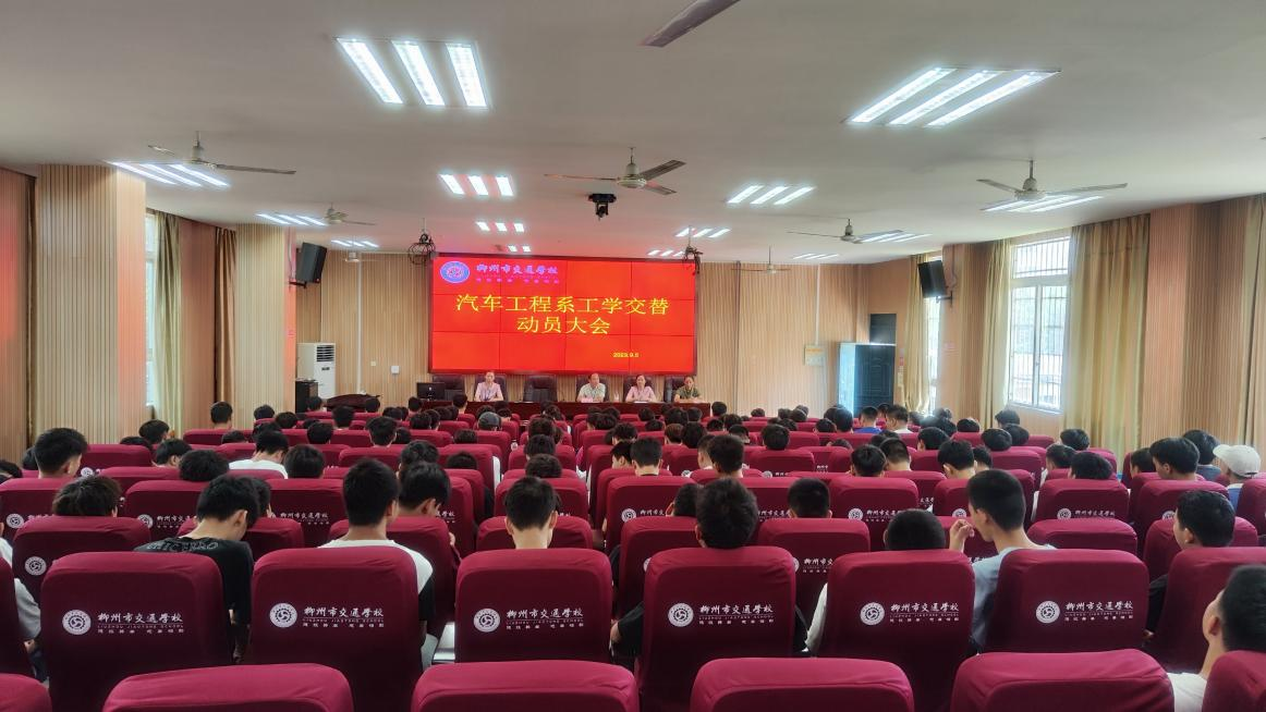 9月5日上午,汽车工程系在志远楼第三报告厅召开2022级学生赴上汽通用五菱股份有限公司工学交替动员大会。罗柳健副校长、教务科研处主任潘雪玲、学生工作和安全保卫科副科长张喜财及汽车工程系系部领导、部分班主任参加了本次动员大会。
