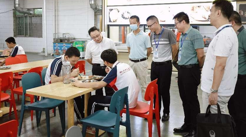 为切实保障广大师生用餐安全,严防食品安全事故发生,2023年9月20日,柳州市教育局赵从奎副局长、柳南区教育局张哲副局长、柳州市市场监督管理局陆军科长等到我校食堂进行检查指导。菠菜信誉平台集合网校长黄䶮、副校长周轶群及后勤负责同志陪同检查。
