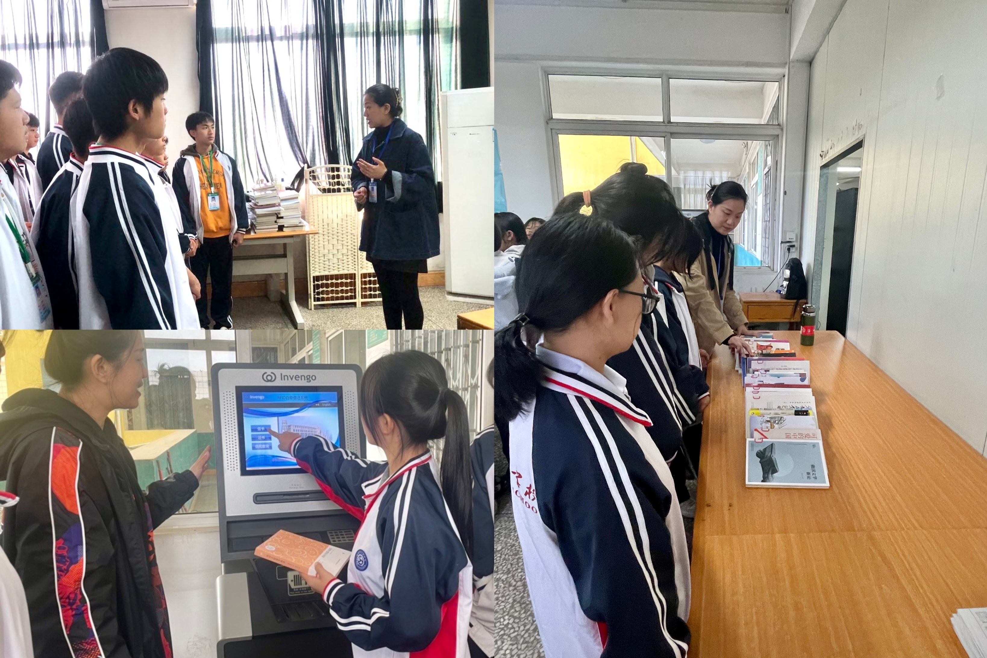 学校图书管理员分享好书及指导学生们使用自助借阅机