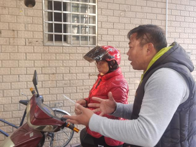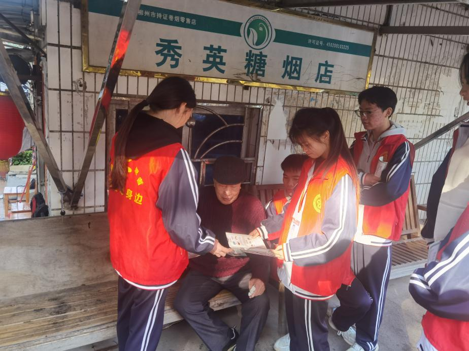 党员教师和学生志愿者们为居民宣传垃圾分类知识