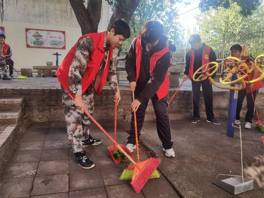 党员教师和学生志愿者们身着志愿服,带着宣传彩页,深入社区,围绕生活垃圾的四个类别——可回收物、厨余垃圾、有害垃圾、其他垃圾,结合生活中的实例向居民们宣传垃圾分类知识。随后,老师和同学们充分发扬了不怕脏、不怕累、不怕苦的精神,分区域对社区内卫生死角进行了彻底清理,手持垃圾捡拾夹、扫把,对丢弃在社区的塑料袋、碎纸屑、烟头等垃圾废弃物进行清理分类。