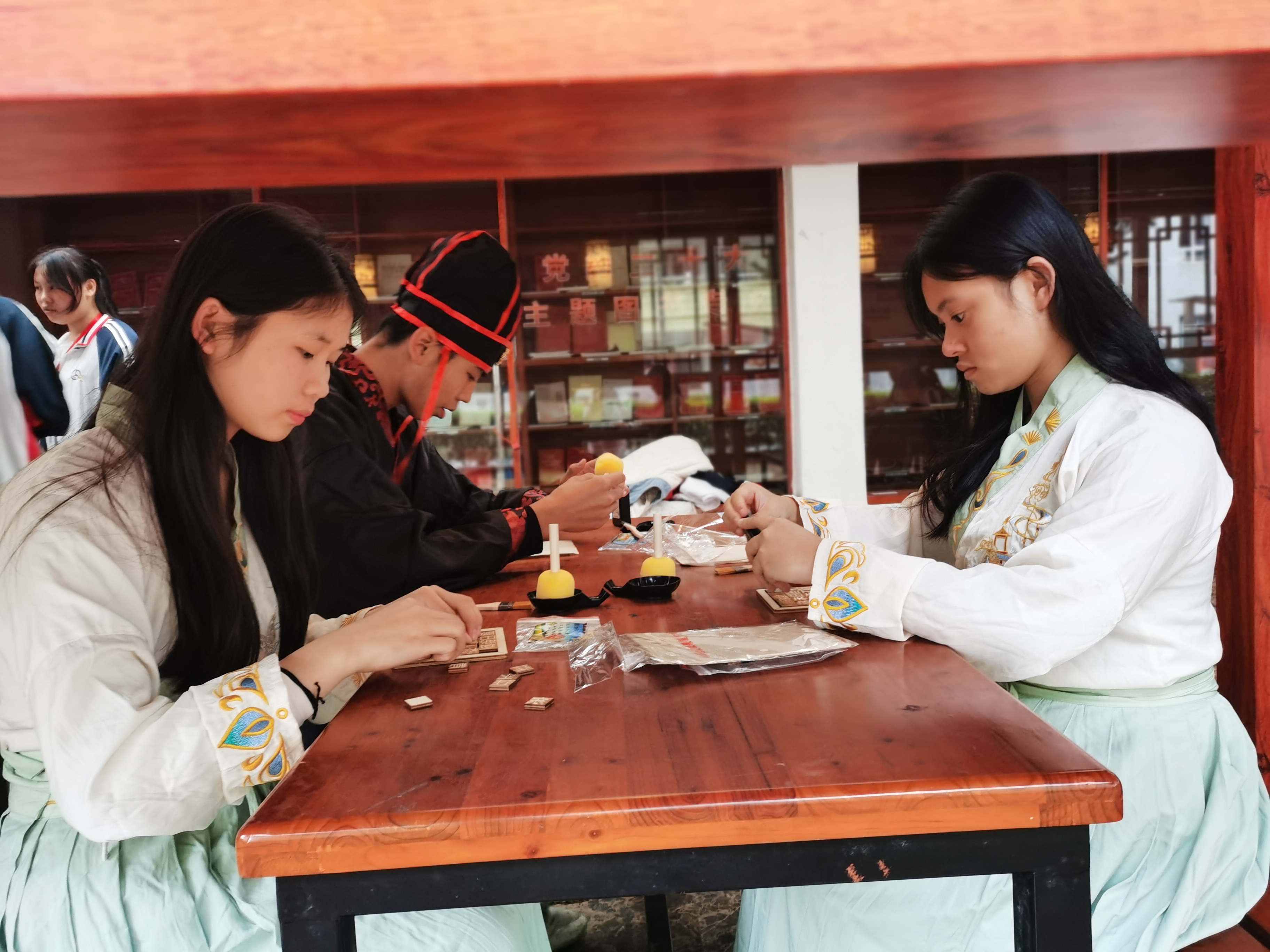 为进一步传承中华优秀传统文化,弘扬非物质文化遗产,树立民族文化自信,丰富校园文化生活,提高学生的艺术修养,培养团队协作精神,交通服务系的同学们在民族之韵社团指导老师覃江颂的带领下开展“感悟活字印刷术的传承与魅力”体验活动,带领同学们近距离感受非物质文化遗产的独特魅力,一起用双手触摸跨越千年的记忆,让同学们体验古代黑科技活字印刷术,感悟古老科技的魅力,提高审美能力与艺术修养。