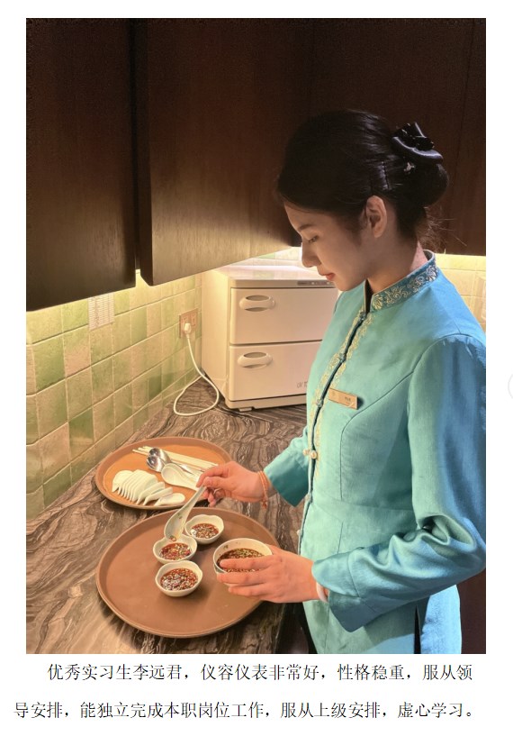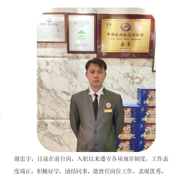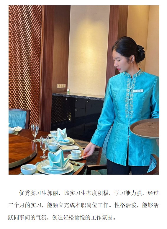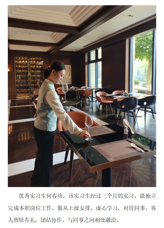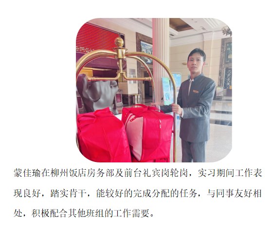 谢忠宇、林文佳、李禹姗、蒙佳瑜四位同学被柳州饭店集团推选为2024届优秀实习生。