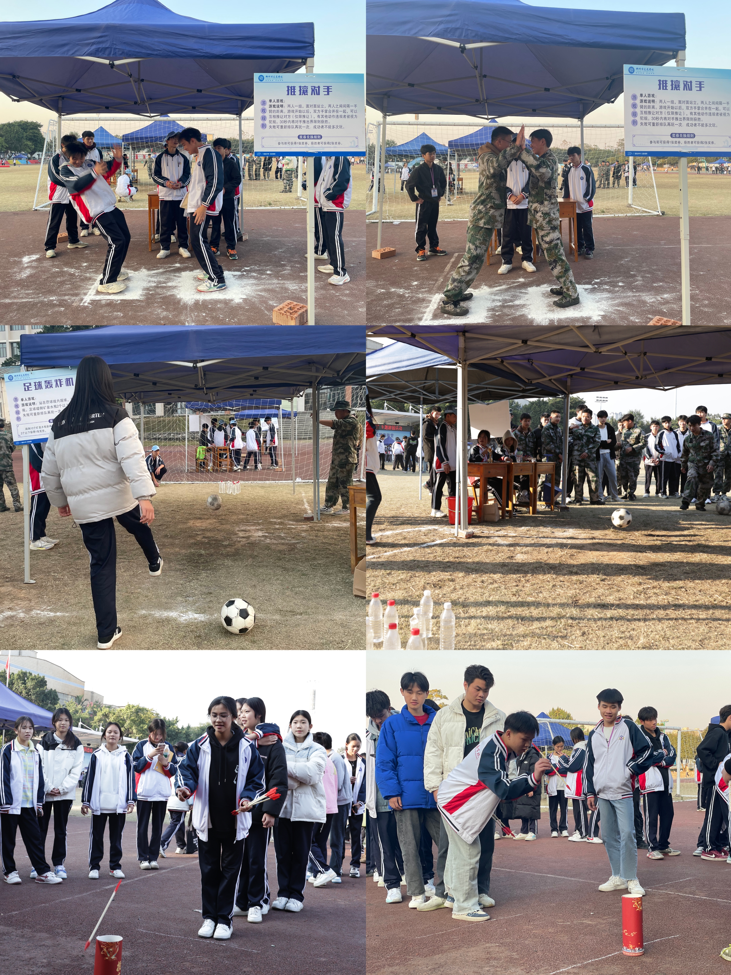 在足球轰炸机项目中,同学们需用足球准确击中目标,展现出惊人的准确性和力量。排球颠簸则考验同学们的平衡感和协调性,参赛者需要在颠簸的路面上稳稳地接住排球。推攘对手则是一场激烈的对抗赛,参赛者需用智慧和力量战胜对手。
