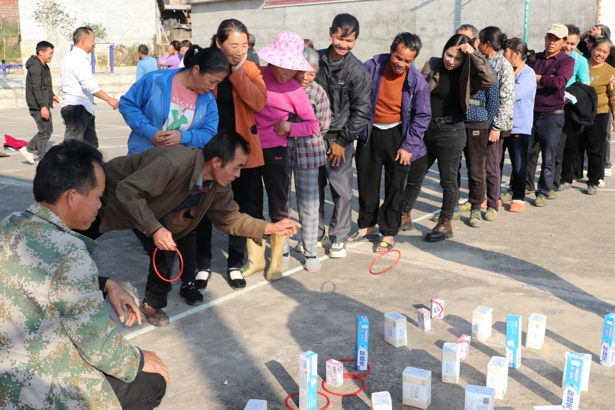 游园会设置了“投出健康”和“套中幸福”两个互动项目,村民们可通过投篮和套圈小活动来获取生活用品类礼品,吸引了众多村民踊跃参与,现场热闹非凡,充满了欢声笑语,给忙于采摘砂糖橘的大家带来了轻松与闲趣。