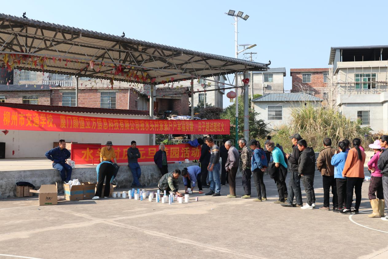 12月27日,在元旦佳节来临之际,我校党委副书记、纪委书记梁汉飞带队前往定点帮扶村鹿寨县四排乡水头村开展乡村振兴工作,联合水头村村委和驻村工作队在村篮球场举办了一场别开生面的元旦游园会。