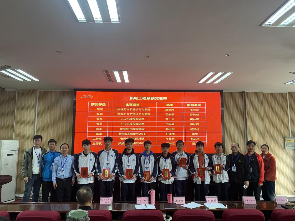 仪式上,潘雪玲主任宣读了获奖名单,罗柳健副校长及各系部主任为获奖选手颁发奖状,并合影留念。本次技能大赛,学校组织开展了16项比赛项目,全校有900多名学生参赛,其中有521名学生获奖,创学校参赛人数历史新高。