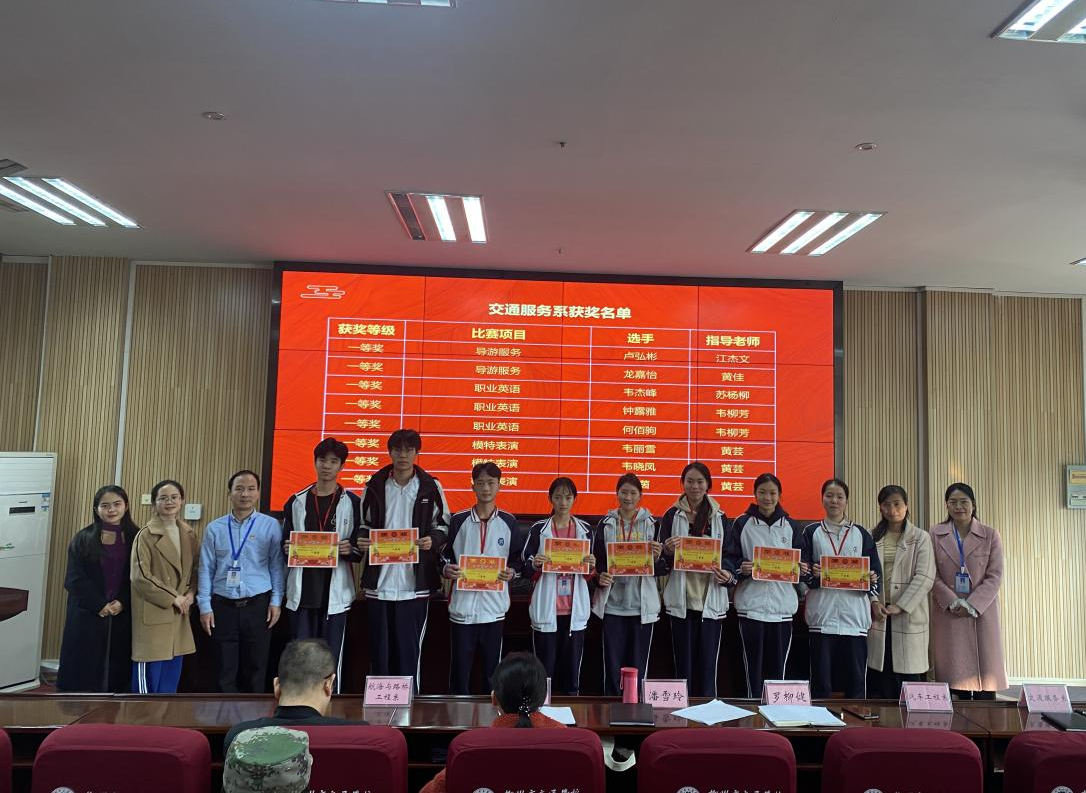 为表彰在2023年校级学生技能大赛中表现突出的同学,1月15日下午,我校在第三报告厅举行2023年校级学生技能大赛颁奖仪式。副校长罗柳健、各系部主任和分管教学副主任,技能大赛各参赛选手及指导教师参加了颁奖仪式。会议由教务科研处主任潘雪玲主持。