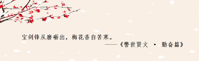 宝剑锋从磨砺出,梅花香自苦寒。——《警世贤文 · 勤奋篇》
