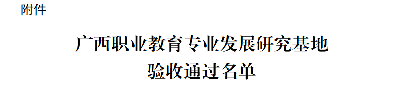 2024年3月4日,广西壮族自治区教育厅发布了《自治区教育厅关于公布广西职业教育专业发展研究基地建设项目验收结果的通知》(桂教职成〔2024〕12号),全区共92个基地通过验收。其中我校由马立峰老师带领汽车工程系教师共同建设的新能源汽车运用与维修专业群发展研究基地顺利通过验收。