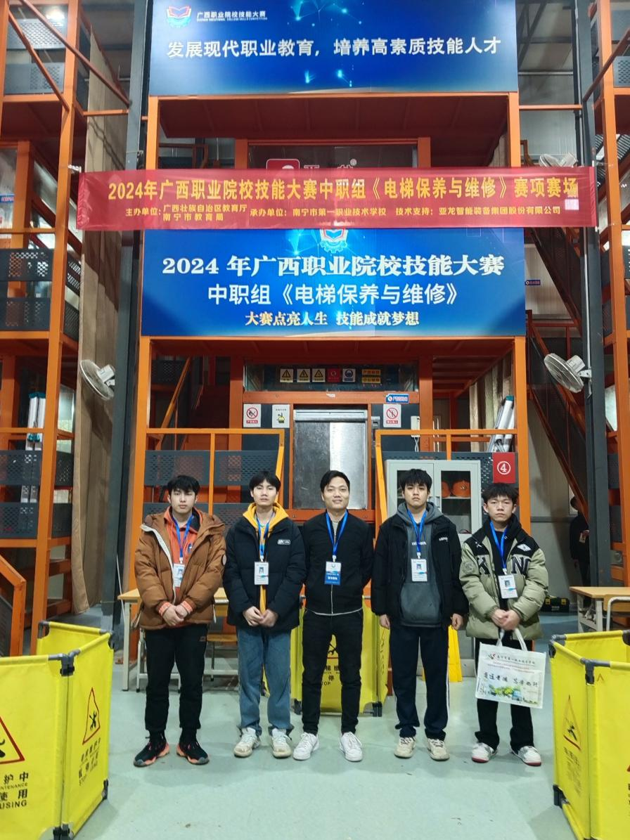 3月11日,2024年广西职业院校技能大赛中职组《电梯保养与维修》赛项在南宁第一职业技术学校举行,共有25支参赛队伍同台比拼。我校参赛师生勇于拼搏,经过激烈的角逐,22电梯1班刘俊军、23电梯1班周宏荣获赛项总分第三名拟获一等奖,23电梯1班韦敬扬、韦昶兵荣获赛项总分第四名拟获二等奖(指导老师团队:杨国柱、龙志河、潘雪玲、陈慧)。