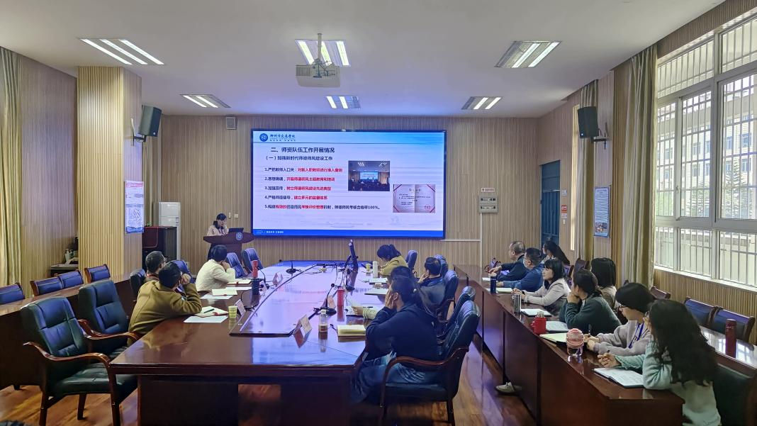 会上,工会(妇女)、校团委、教务科研处、公共基础部和人力资源科对一年来工作情况、存在不足进行分析汇报并作出下一步的工作重点。