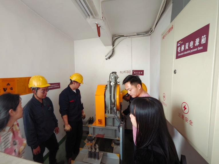 电梯维保工地现场,技术人员利用现场的便利条件,向我校老师介绍了维保基础工作,对照机房实物细致明了地讲解了新技术的要求和区别。通过本次外出调研及参观学习,电梯专业教师们得到了一次难得的接触电梯维保工作现场的机会,将理论知识与现场工作能有机结合起来。