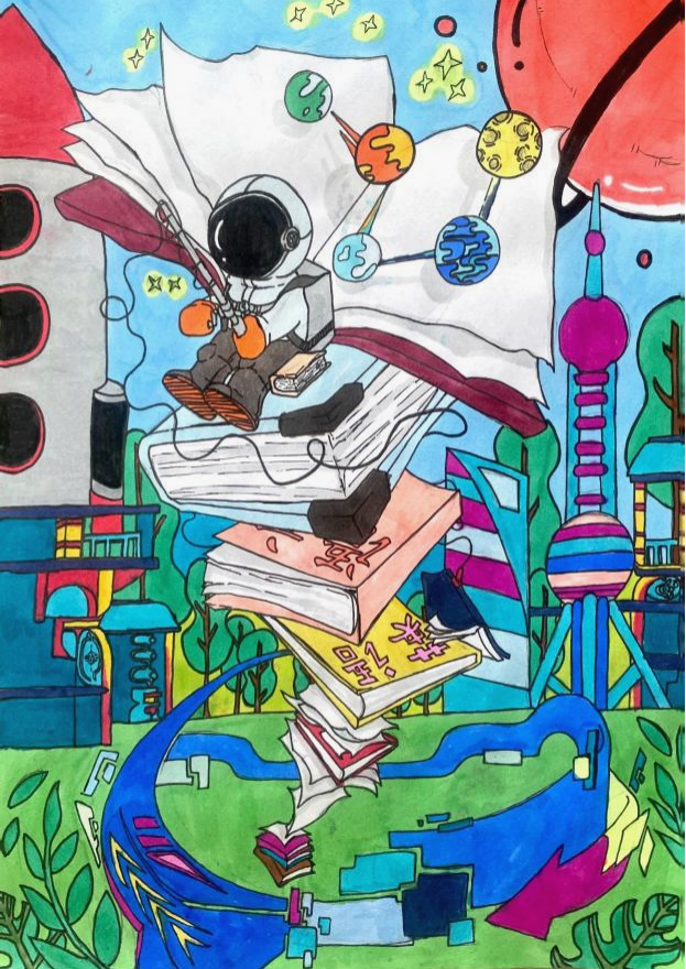 交校动漫与游戏制作专业师生通过绘画这一富有表现力的艺术形式,展现书籍与阅读所带来的美好与乐趣,让人们在欣赏画作的同时,品味书香,感受阅读的魅力。