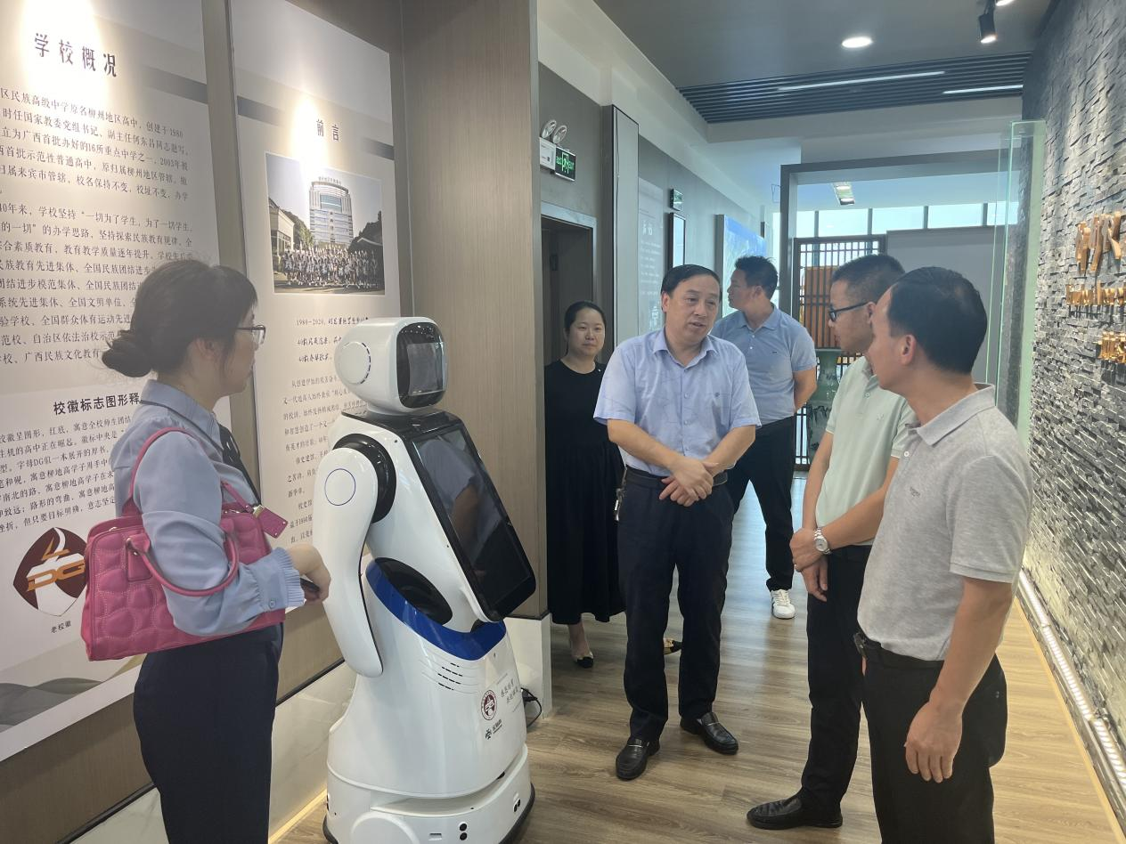 柳州地区民族高中党委副书记李健向学校一行介绍校史馆