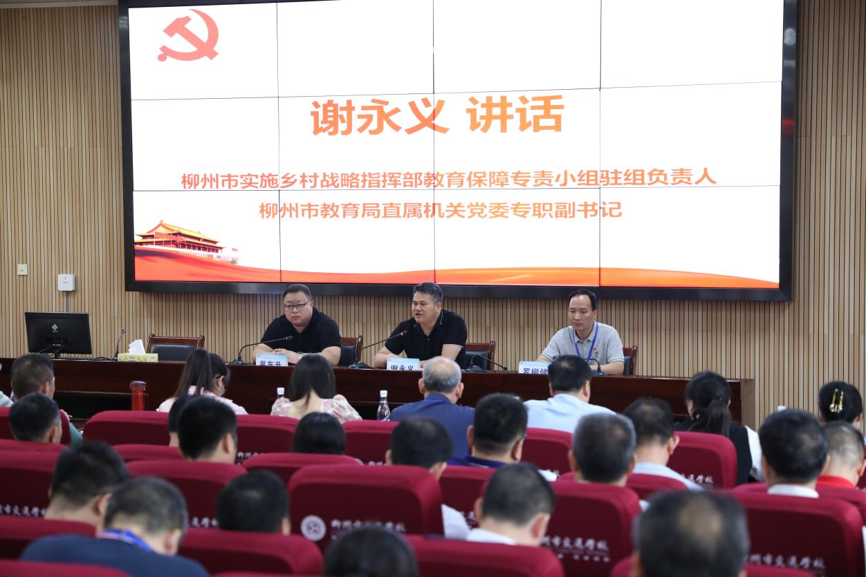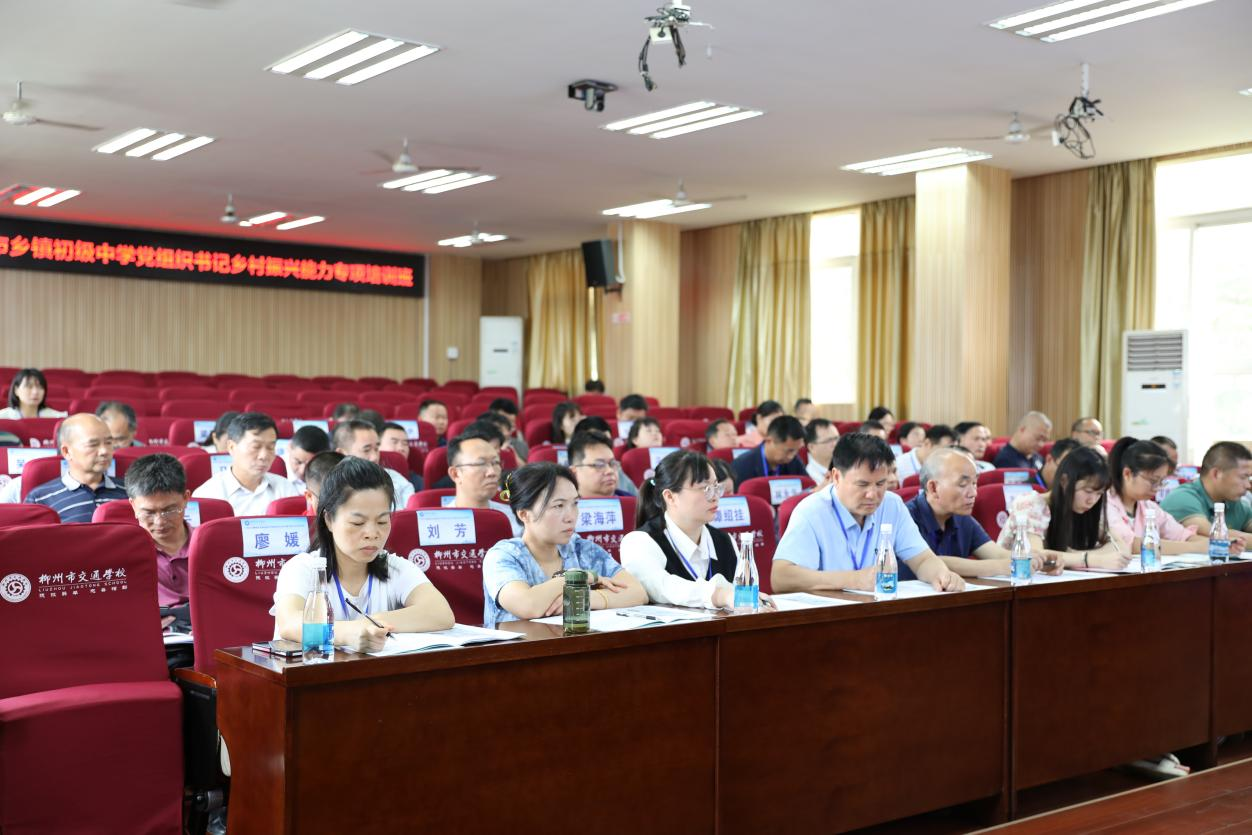 实施乡村振兴战略是党和国家作出的重大决策部署。乡镇是全面推动乡村振新工作主战场的前沿阵地,推动乡村振新的关键在于抓班子、带队伍,以职业教育赋能乡村振兴,培养更多更好的技术技能型人才。5月22日,由市教育局主办,我校承办的2024年柳州市乡镇初级中学党组织书记乡村振兴能力专项培训班正式开班。柳州市实施乡村战略指挥部教育保障专责小组驻组负责人、柳州市教育局直属机关党委专职副书记谢永义,市交通学校党委委员、副校长罗柳健出席开班仪式,各县、区(新区)乡镇初级中学书记参加开班仪式。