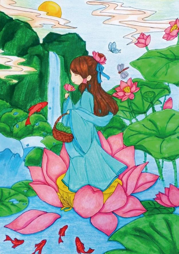 我校动漫与游戏制作专业的同学们以《夏荷》为主题进行创作,根据自己的理解和感受,用不同的画风和技法来表现夏日荷花之美。作品不仅体现了同学们对美好生活的热爱,对文化意蕴的传承,更展现了他们的对美好事物的向往与感悟。